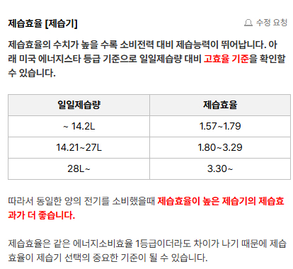 제습기 고르다 보면 너무 종류도 많고 스펙도 많아도대체 뭘 구매해야 할지 난감한데요다 떠나서 이거 하나만 보세요."제습효율" 정말 이거 하나만 보시면 됩니다.제가 검색해 봤는데제습기 중에서 제습 효율이 가장 좋은 제품은제습효율: 3.4로LG전자 휘센 DQ132PWXC 입니다.비싸다고 제습효율이 좋아지는 것도 아닙니다.참고하세요. PS : 위 제품보다 효율은 좀 떨어지지만 편리성과 제습능력이더 높은 모델은 휘센 DQ162PBBC 입니다.대신 소비전력은 약간 높습니다. 물통에 조명이 있어서물이 얼마나 찼는지 바로 보입니다. DQ132PWXC에는 없습니다.두 가지 제품을 모두 사용중인데 상황에 따른 장단점이 있고지금은 가격이 비싸니 비수기 때 구매하세요. 휘센 DQ162PBBC휘센 DQ132PWXC..